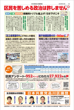 本庁舎は2011年に36億円をかけて耐震化したので、あと12年もちます。建替えを急ぐ必要はなく、物価高騰などで苦しい区民生活への支援を優先すべきです。