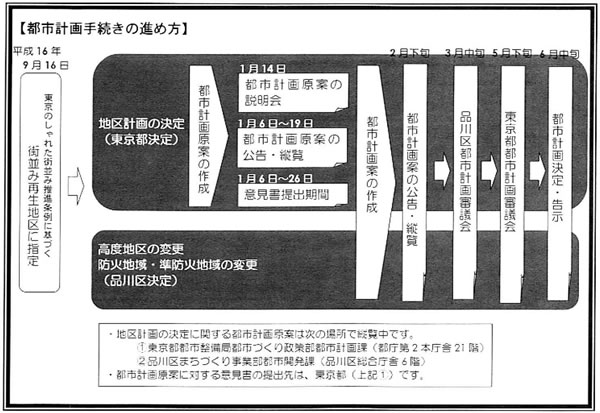 (3)都市計画の手続きをご覧ください。1月14日の説明会後、6ヵ月後には決定がされます。今後の進め方として、合意形成ができた所から順次開発が進みます。対象地域外との調和をどのように考えているのでしょうか。