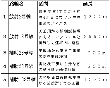 本当に必要な道路なのでしょうか? 都市計画道路第三次事業化計画(案)が発表されています。区内では、5路線と1駅広が優先整備路線となっています。無駄が無いのか、生活者に必要なのか、しっかりと見ていくことが必要です。 1月30日(金)までにご意見を送ってください 平成16年度から27年度に向けた都市計画道路の着手路線が発表されました。 東京都は「首都東京を魅力と活力あふれる都市へと再生すべく、区部における都市計画道路全体の新たな整備方針の策定に取組む」として左記表にある区内5路線を優先整備路線(案)として発表しています。 考え方の基本として、3つの基本理念、 しかし、1.・2.について言えば、住民のための道路整備というよりも、都市再生やセンターコア計画などの人の住めないまちづくり計画を基本理念にしているとしか思えません。 3.なども生活者の立場に立っているとは思えません。私は区議会建設委員会報告の質疑で、放射2号線計画に関わる権利者数、住民の意見について質問しましたが、「都の計画。権利者数や住民意見はつかんでいない」というものでした。3.の立場に立つなら、都の計画内容を明確につかみ、区民の意見を品川区が把握していくことが必要ではないでしょうか。 区内5路線には必要とされる道路もあるでしょう。みなさんが、意見・提案を含めて東京都に対し問い掛けをしていただけるよう、お願いします。