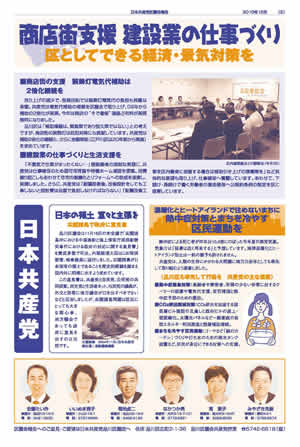 「不景気で仕事がまったくない…」建設業者の深刻な実態に、共産党は仕事確保のため認可保育園や特養ホーム増設を提案。民需掘り起こしもあわせて住宅の耐震化とリフォームへの助成を提案し、実現しました。さらに、共産党は「耐震診断後、改修設計をしても工事しないと設計費は自腹で負担しなければならない」「耐震改修工事を区内業者に依頼する場合は補助引き上げの誘導策を」など具体的な要望も取り上げ、仕事確保へ奮闘しています。あわせて、下請け・孫請けで働く労働者の賃金確保へ公契約条例の制定を区に提案しています。